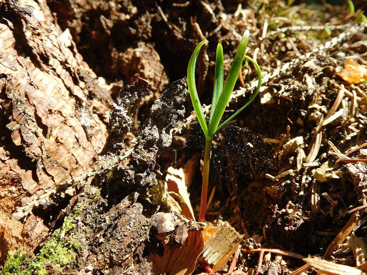 cítí vysoký tlak konkurence. Na mrtvém dřevě je semenáček zbaven okolní