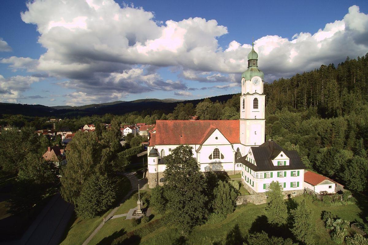 O rok později 1909 byla Bavorská Železná Ruda povýšena na samostatnou farnost a 10. července 1909 poprvé vyzváněly zvony na věži nového farního kostela. 14. listopadu téhož roku byl kostel slavnostně benedikován a 19. října 1919 vysvěcen řezenským biskupem. Patronem kostela je sv. Jan Nepomucký.