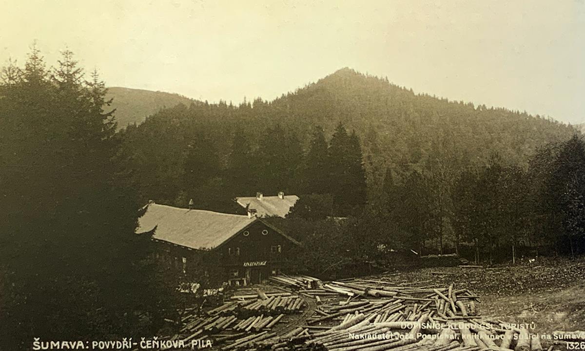 „Přišla k pile Bubeníčkově, kde vtékající do sebe řeky Vydra a Křemelná tvoří Otavu; bělaly se dlouhé vory v nádržkách černou vodou naplněných; pily syčely jako ve dne – práce bylo až příliš; zakmitlo se tu a tam bludné světlo; zaštěkal pes; ozvalo se hlasité mluvení; jí však si nikdo nepovšiml.“