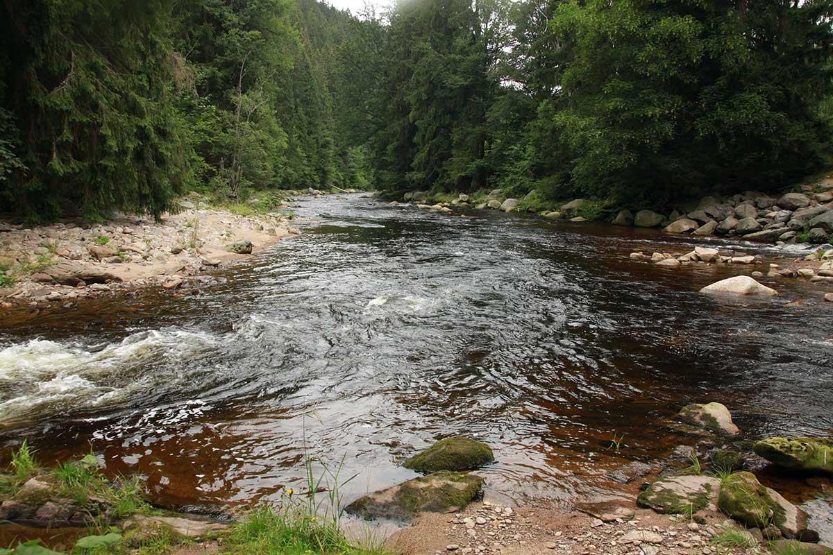 vydána: řeka se tu pojí se vzteklými bystřinami, jež sbírajíce
