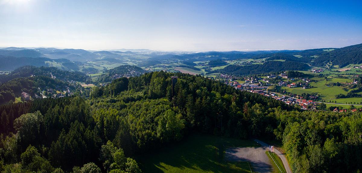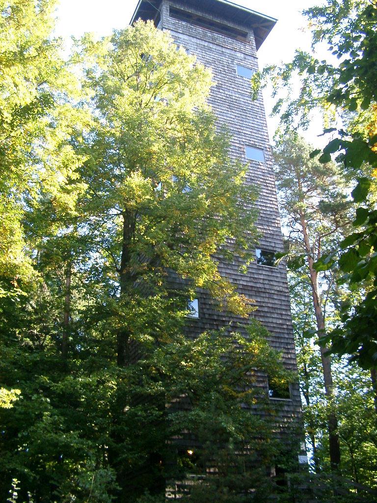 Pěšky jdeme přes náměstí nahoru a kolem kostela, po 100 m zabočíme do ulice Regener Straße. Na levé straně následujte odbočku "Anton-Voreck-Weg" až k rozhledně, ke které dojdete přibližně po 2 km.