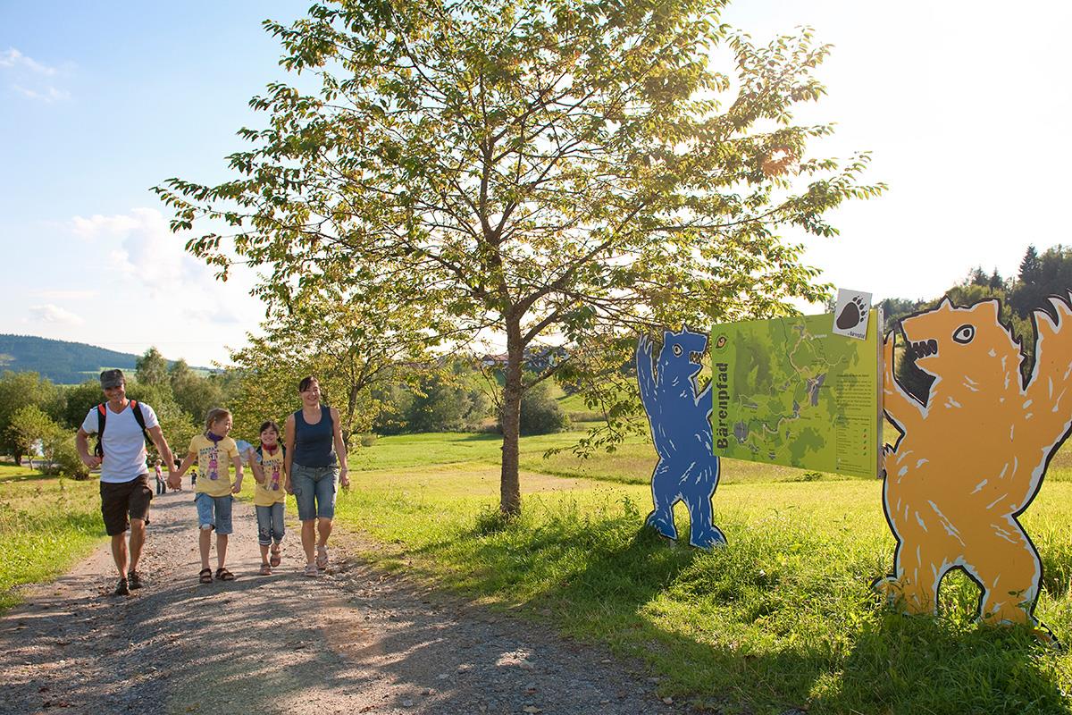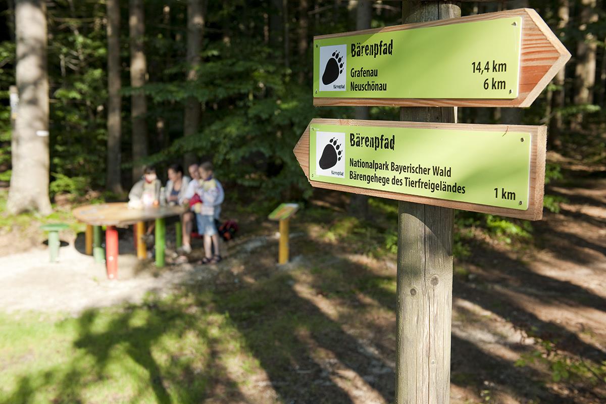 Medvědí stezka, radost z pěšího výletu pro malé i velké propojuje Město Grafenau s návštěvou výběhů se zvěří v Národním parku Bavorský les.