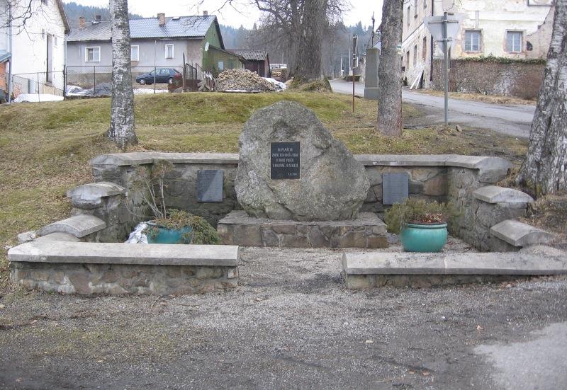 V centru obce byl v roce 2001 odhalen pomník na památku 32 obcí a sídel Prášilska, které byly během padesátých let zničeny vojskem Československé lidové armády. Pomník s kompletním soupisem českých i německých názvů zaniklých obcí naleznete vpravo od turistického rozcestníku, který se nachází v zatáčce směrem na Srní (cca 100 m za autobusovou zastávkou).