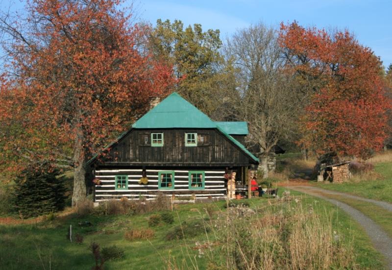 Zdobí typické šumavské chalupy nad údolím řeky Vydry.