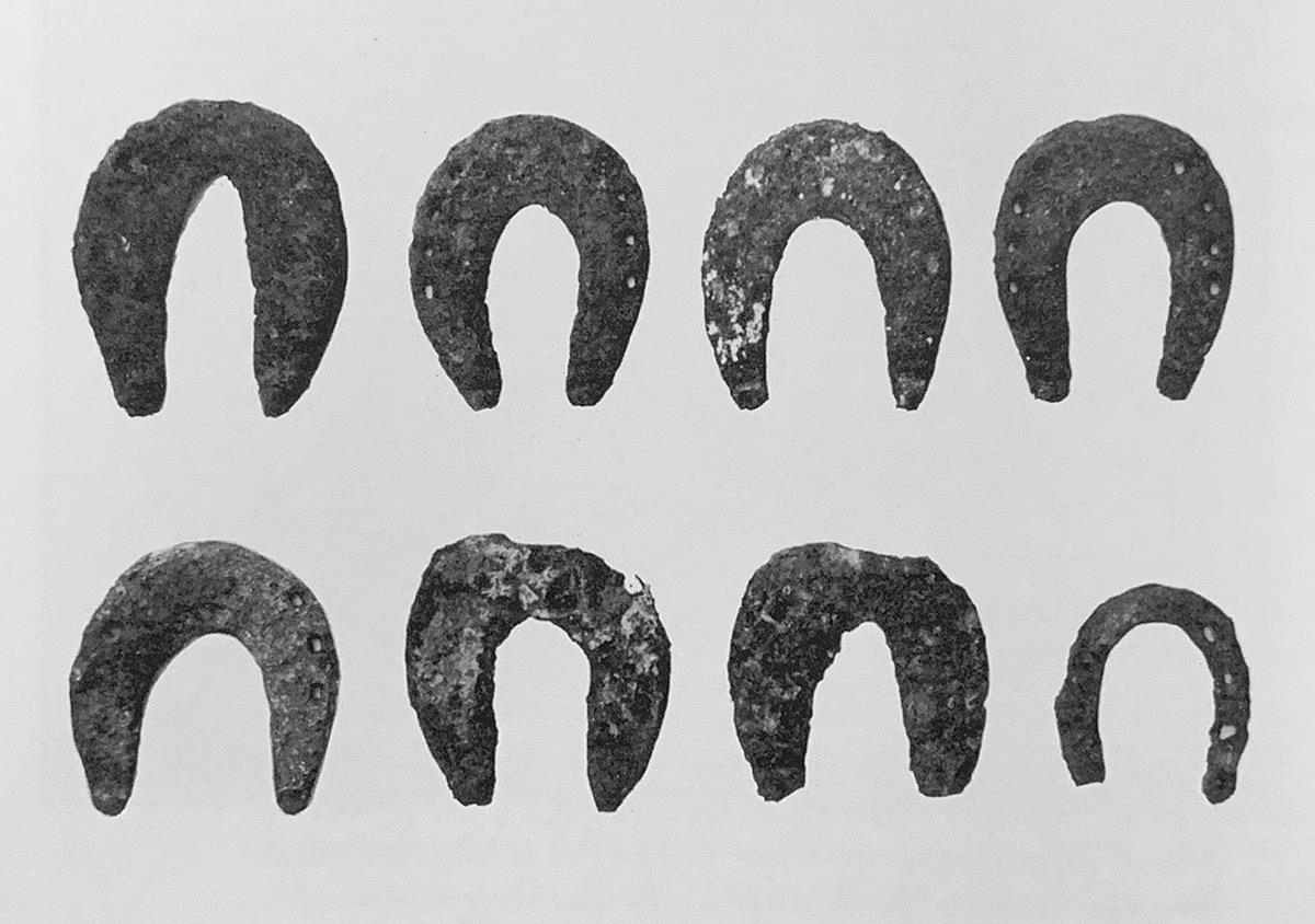 kůň zapřažený v chomoutu. K přepravě zboží byli používáni soumaři (Dnes