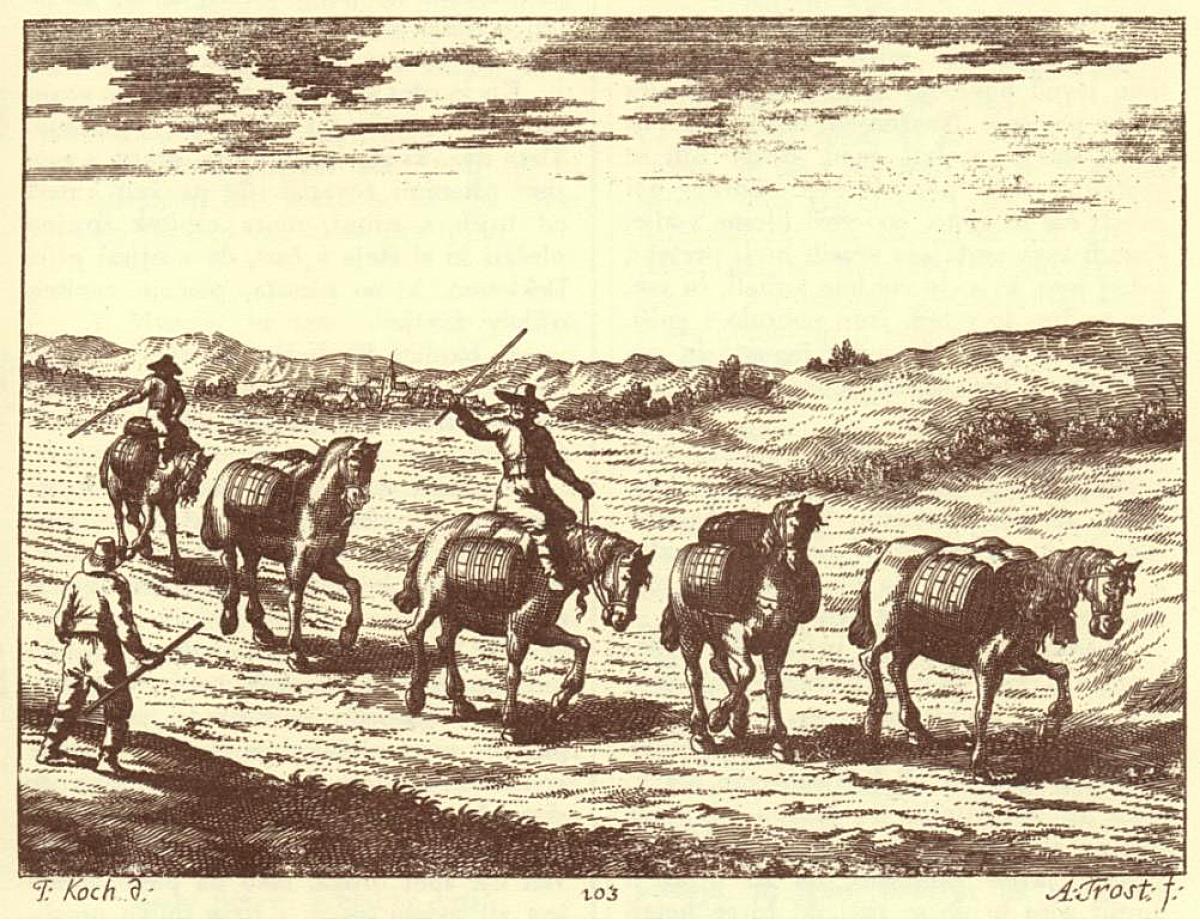 Prvním dopravním prostředkem, dá-li se to tak nazvat, který se pohyboval napříč Šumavou, byl člověk. Přepravované zboží nosil kupec na zádech buď sám nebo si za tím účelem najímal nosiče. Kromě velké dřiny to mělo i jistou výhodu. Stezka mohla být úzká, zamokřená místa snadněji přešel nebo si udělal úzký poválkový chodníček. S přibývajícím léty, i z důvodů nutnosti přepravovat těžší náklady, se stezka rozšiřovala a člověka, coby nosiče nahrazuje mezek nebo kůň. Ti jsou buď ověnčeni nákladem nebo táhnou sáně. Vždyť nejvhodnější roční dobou pro přesun zboží byla zima, protože zamrzlé cesty byly schůdnější než ty podmáčené. V zimě bylo i zároveň obecně méně práce a bylo po žních. Zboží se mohlo přenášet i na dřevěných nosítkách dvěma lidmi nebo mezky. Po úzké cestě putovali soumaři v řadě za sebou.