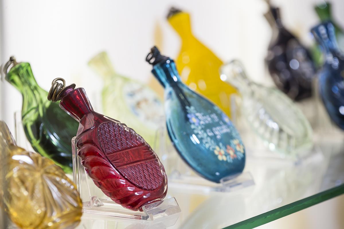 Pestrou sbírku starých i nových lahviček na šňupací tabák doplňuje největší sklenice na šňupací tabák na světě a spousta neobvyklých dóziček a nádob.